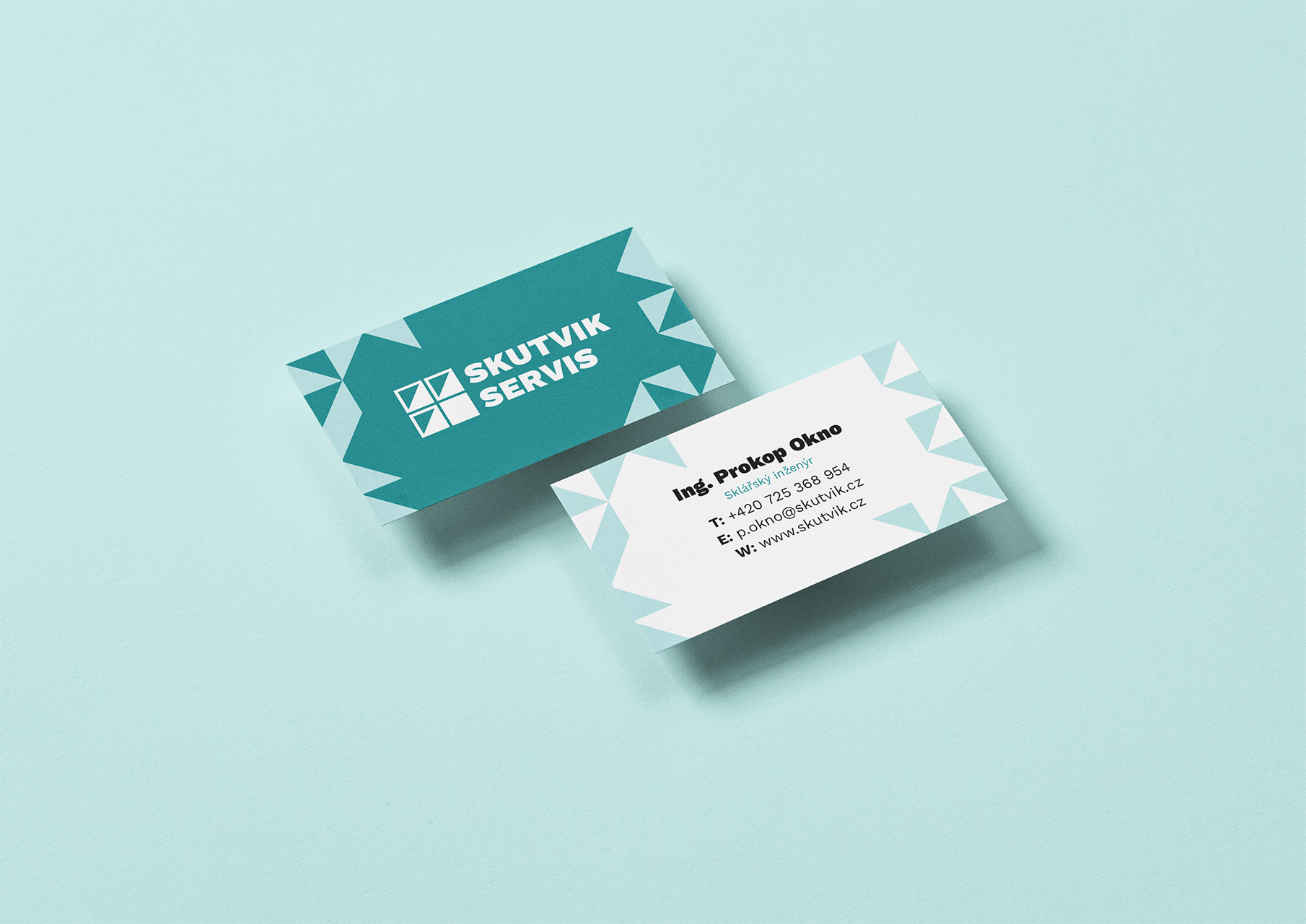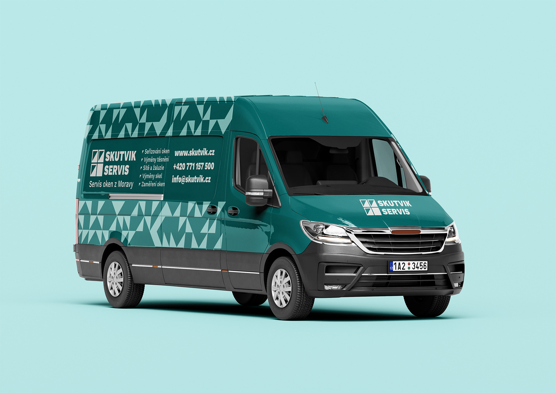 Ikona – okno, od nějž se odráží světlo – symbolizuje nejen to hlavní na Skutviku, což jsou samozřejmě okna, ale v pravých úhlech se ukrývá stabilita a spolehlivost, kterou může zákazník od „Skutviků“ očekávat. Motiv trojúhelníků je propleten celou značkou, především ve vzorech na pozadí.