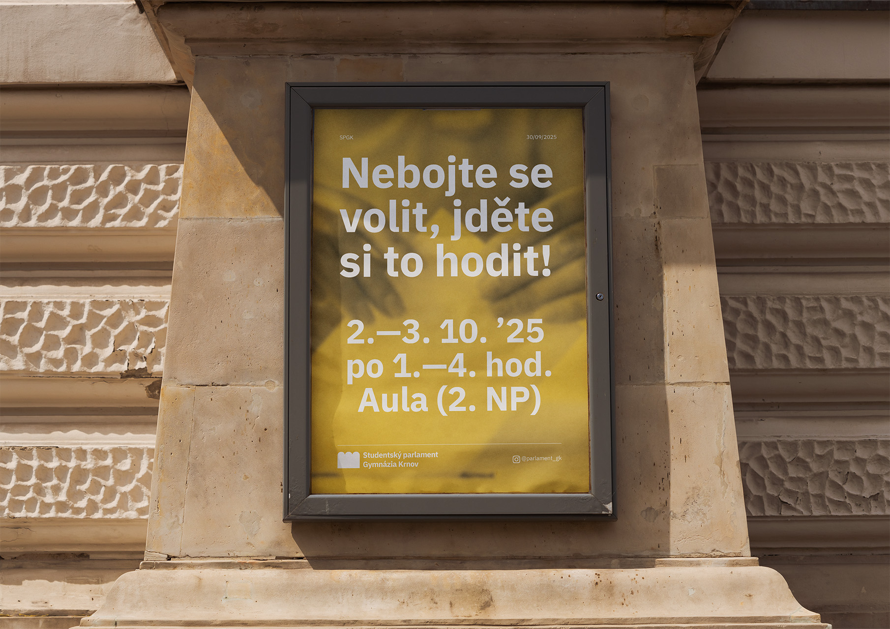 Vizuální identita pro nově vznikající studentský samosprávný orgán. Zahrnuje především externí výstupy s větším zaměřením na dobře čitelné a přístupné tiskoviny a jednoduše uchopitelné sociální sítě.